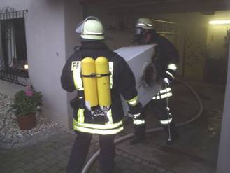 Einsatzbericht Schaden durch Rauchmelder und Feuerlöschereinsatz gering Aus noch ungeklärter Ursache geriet am Abend ein Wäschetrockner im Keller eines Wohnhauses in Brand. Der durch einen Rauchmelder alarmierte Hausbesitzer setzte umgehend einen Feuerlöscher gegen die Flammen ein. Die Feuerwehr entfernte den Trockner aus dem Keller und lüftete das Wohnhaus mit einem Hochleistungslüfter. Einsatzleiter: HBM J. Rüger Fotos: Feuerwehr Einsatzdauer: 1 Stunde