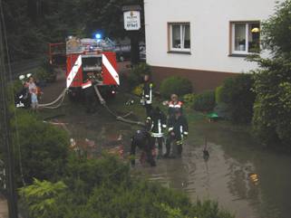 Einsatzbericht Land unter Im Vorgarten einer Gaststätte setzte starker Regen ca. 500 Quadratmeter des Grundstücks und den angrenzenden Keller unter Wasser. Mit mehreren Pumpen wurde das Anwesen von den Wassermassen befreit. Einsatzleiter: BI J.-M. Lohölter Fotos: Feuerwehr Einsatzdauer: 3 Stunden