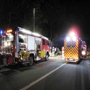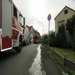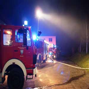 Einsatzbericht Voßwinkel. In der Nacht zu Mittwoch, den 11. November wurden gegen kurz vor zwei Uhr zunächst die beiden Hauptwachen und die Löschgruppe Voßwinkel der Freiwilligen Feuerwehr der Stadt Arnsberg über Sirene zu einem LKW-Brand auf einem Pferdehof in Voßwinkel alarmiert. Bereits auf der Anfahrt konnten die Einsatzkräfte hellen Feuerschein feststellen, so dass umgehend weitere Kräfte des Löschzuges Neheim, ebenfalls über Sirene, alarmiert wurden. Zudem wurde der Rettungsdienst der Arnsberger Feuerwehr zum Einsatzort entsandt.Beim Eintreffen der ersten Einsatzkräfte brannte ein Pferdetransporter bereits in voller Ausdehnung, und das Feuer drohte auf einen unmittelbar benachbarten Reitstall überzugreifen. Sofort bauten die Rettungskräfte eine sogenannte Riegelstellung auf, durch die der Reitstall mit einem gezielten Löschwassereinsatz vor den Flammen geschützt werden konnte. Gleichzeitig wurde der brennende Transporter mit mehreren C-Rohren gelöscht.Da sich die Wasserversorgung an der Einsatzstelle als problematisch darstellte, wurden zum einen mehrere Löschfahrzeuge mit Wassertank auf den Hof beordert und gleichzeitig eine rund 600 Meter lange Schlauchleitung zum Heranführen von Löschwasser verlegt.Für die rund 45 Einsatzkräfte, die mit neun Löschfahrzeugen und mehreren Sonderfahrzeugen vor Ort waren, war der Einsatz nach gut zwei Stunden beendet. Menschen oder Tiere kamen bei diesem Brand glücklicherweise nicht zu Schaden. Eine Brandsicherheitswache blieb noch bis in die frühen Morgenstunden vor Ort.(Quelle: UBM Udo Schütte, stellv. Pressesprecher)