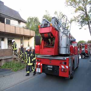 Einsatzbericht Arnsberg. Ein Großaufgebot von Feuerwehr und Rettungsdienst eilte am Abend des 29. September um 17:30 Uhr zu einem leerstehenden Wohnhaus in der Arnsberger Wolfsschlucht. Von dort war gemeldet worden, dass starker Rauch aus dem Gebäude dringe. Ausgehend von der Alarmmeldung musste damit gerechnet werden, dass sich in dem Gebäude Menschen in unmittelbarer Gefahr befinden. Daher wurden die Hauptwachen Arnsberg und Neheim, der Löschzug Arnsberg sowie der Basislöschzug 3 mit den Einheiten aus Rumbeck und Oeventrop alarmiert.Ein Einsatztrupp des ersteintreffenden Fahrzeugs verschaffte sich unter schwerem Atemschutz Zugang zu dem Gebäude und drang in das erste Obergeschoss vor, das der Ursprungsort für die Rauchentwicklung war. Schnell stellte sich ein brennendes Sofa als Brandherd und als Grund für die starke Verrauchung der gesamten Wohnung heraus. Die Wehrmänner hatten das Feuer schnell gelöscht und lüfteten die Wohnung quer. Zudem wurde vor der Eingangstür ein Hochleistungslüfter in Stellung gebracht und das gesamte Gebäude vom Brandrauch befreit. Mit einer Wärmebildkamera kontrollierten die Einsatzkräfte den Brandort außerdem auf etwaige verbliebene Glutnester.Auf Grund der Tatsache, dass das Gebäude bereits seit längerer Zeit leer steht, kamen keine Bewohner zu Schaden. Der ebenfalls alarmierte Rettungsdienst konnte -so wie der Großteil der bereit stehenden Wehrleute- wieder abrücken, ohne in Aktion treten zu müssen. Nach einer abschließenden Kontrolle des Brandortes konnten auch die letzten der rund 40 Einsatzkräfte, die mit mehreren Löschfahrzeugen und einer Drehleiter vor Ort waren, wieder in ihre Standorte einrücken. Die Feuerwehr war etwa eine dreiviertel Stunde lang im Einsatz. Die Frage der Brandentstehung muss nun die Kriminalpolizei beantworten.(Quelle: StBI Peter Krämer, Pressesprecher)