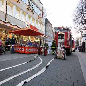 Einsatzbericht Neheim. Am Montag, den 23. November rückten gegen 15:45 Uhr die Hauptwachen Neheim und Arnsberg sowie der Löschzug Neheim der Arnsberger Feuerwehr zu einem Geschäftsgebäude in der Neheimer Fußgängerzone aus. Dort hatte eine Brandmeldeanlage Alarm ausgelöst.Im Zuge der Erkundung vor Ort stellte sich heraus, dass der Heizungskeller des Geschäftshauses stark verraucht war, jedoch war kein Feuerschein sichtbar. Umgehend wurde daraufhin der verrauchte Gebäudeteil von einem Einsatztrupp unter schwerem Atemschutz auf etwaige Brandnester abgesucht. Hierbei stellte sich heraus, dass Laub in einem Lichtschacht des Heizungskellers Feuer gefangen hatte und zu der starken Rauchentwicklung geführt hatte. Fußgängerzone für die Dauer des Einsatzes gesperrtDer Trupp entfernte das Laub mit einer so genannten Schuttmulde aus dem Lichtschacht und löschte es im Freien ab. Anschließend wurde der Heizungskeller ausgiebig gelüftet und mit einer Wärmebildkamera auf verbliebene Glutnester kontrolliert. Für die Einsatzdauer wurde die Einsatzstelle in der belebten Fußgängerzone weiträumig durch die Feuerwehr abgesperrt. Da zu keiner Zeit eine Gefährdung im Verkaufsbereich des betroffenen Geschäftshauses bestand, war eine Evakuierung des Gebäudes nicht notwendig. Die rund 30 vor Ort befindlichen Einsatzkräfte konnten nach etwa eineinhalb Stunden den Einsatz beenden und wieder in ihre Standorte einrücken. (Quelle: UBM‘in Christina Severin, stellv. Pressesprecherin)