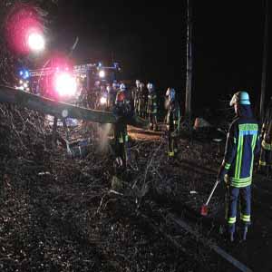 Umgestürzte Bäume blockieren Straße zwischen Wennigloh und Arnsberg