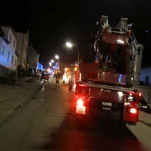 Einsatzbericht Arnsberg. Die Arnsberger Feuerwehr hatte in der Nacht vom 10. auf den 11. Oktober zwei fast gleichzeitige Brandeinsätze zu bewältigen.Zu einem Einsatz kurz vor Mitternacht, wurden am 10. Oktober die Hauptwachen Arnsberg und Neheim sowie der Löschzug Arnsberg in die Rosenbergerstraße in Gierskämpen gerufen. Dort war der Leitstelle Meschede ein Kellerbrand gemeldet worden. Bereits auf der Anfahrt rüsteten sich mehrere Einsatztrupps mit schwerem Atemschutz aus. Da im betroffenen Wohnhaus mehrere Wohnparteien gemeldet wa-ren, war ein schnelles Eingreifen der Feuerwehrkräfte erforderlich. Umgehend machte sich ein Trupp über das Treppenhaus auf den Weg in den Keller. Schnell war klar, dass sich zu diesem Zeitpunkt keine Menschen im Haus in Gefahr befanden. Alle Bewohner hatten sich bereits aus eigener Kraft ins Freie begeben. Im Treppenraum brannte im Kellerbereich Unrat, der schnell gelöscht werden konnte. Die Wohnungen wurden anschließend gelüftet und der Kellerbereich auf verbliebene Glutnester kontrolliert. Danach konnten alle Bewohner in ihre Wohnungen zurückkehren. Die Feuerwehr war mit rund 45 Kräften im Einsatz.Noch während die Einsatzkräfte in Gierskämpen ihre Arbeit taten, wurde der Feuerwehr-Leitstelle ein weiterer Einsatz gemeldet. Von Arnsberg aus in Richtung Wennigloh sollte ein Stall brennen. Hierzu wurden um 23:34 Uhr umgehend Kräfte der Feuerwehr aus Wennigloh alarmiert. Auf Grund der zunächst unklaren Lage wurden zusätzlich noch die Einheiten aus Niedereimer, Müschede und Breitenbruch sowie die Neheimer Drehleiter zu dieser Einsatzstelle beordert. Vor Ort stellte sich heraus, dass ein Stall mit mehreren Heuballen in Brand geraten war. Die Einsatzkräfte bauten schnell eine Wasserversorgung auf und löschten die Heuballen unter Atemschutz ab. Die Ballen wurden auseinander gezogen und mit Wasser unter Zugabe eines sogenannten Netzmittels gelöscht. Dieses Mittel bewirkt, dass das Löschwasser tiefer in das Brandgut eindringen kann. Rinder, die nahe der Einsatzstelle weideten, ließen sich von den Aktivitäten der Feuerwehr nicht stören und beobachteten das Treiben aus sicherer Entfernung. Bei dem Brand kam kein Tier zu Schaden. Die Feuerwehr war mit mehreren Löschfahrzeugen im Einsatz.(Quelle: BM Patrick Robel, stellv. Pressesprecher)