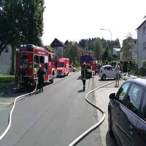 Einsatzbericht Neheim. Bei einer Gasverpuffung in der Dachgeschosswohnung eines Mehrfamilienhauses am Neheimer Müggenberg sind am Abend des 21. Oktober gegen 22:30 Uhr fünf Menschen zum Teil schwer verletzt worden. Feuerwehr und Rettungsdienst wurden von der Feuerwehrleitstelle in Meschede mit dem Alarmstichwort "Explosion in Dachgeschoss" zu dem Einsatz alarmiert. In der Dachgeschosswohnung war es zu einer Explosion gekommen. Nach Angaben der Polizei war ein unsachgemäßer Umgang mit Feuerzeuggas die Ursache für die spontane Flammenbildung. Da zunächst keine genauen Angaben zu der Bewohnerzahl in dem Gebäude vorlagen, wurde eine beträchtliche Anzahl von Rettungskräften in Marsch gesetzt. Die Feuerwehr ging nach ihrem Eintreffen sofort mit mehreren Trupps unter Umluft unabhängigem Atemschutz in die betroffene Wohnung vor und nahm mit einem speziellen Gerät Messungen bezüglich der Gaskonzentration vor. Zeitgleich wurden die Verletzten von dem Rettungsdienst versorgt, der mit mehreren Fahrzeugen vor Ort war. Die beiden schwer verletzten Bewohner mussten in Spezialkliniken nach Dortmund und Bochum transportiert werden. Hierzu wurde auch ein Rettungshubschrauber angefordert. Die übrigen drei betroffenen Bewohner, eine Frau mit ihren beiden Kindern, wurden ebenfalls in ein Krankenhaus transportiert. Die Frau zog sich bei der Flucht aus dem Gebäude eine Verletzung am Sprunggelenk zu. Nach rund zweieinhalb Stunden war der Einsatz für die rund 50 Einsatzkräfte, die mit insgesamt 16 Fahrzeugen vor Ort waren, beendet. (Quelle: UBM Udo Schütte, stellv. Pressesprecher)