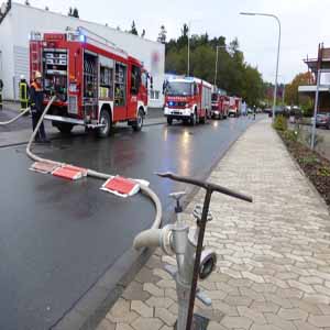 Einsatzbericht Arnsberg. Großeinsatz der Arnsberger Feuerwehr am Mittag des 27. November im Arnsberger Werk des Karton-Herstellers Reno De Medici: Aus ungeklärter Ursache hatte ein auf dem östlichen Betriebsgelände befindliches rund 50 Meter langes Förderband, welches Altpapier von einem Außenlagerplatz in eine Wiederaufbereitungsanlage, einen sogenannten Pulper, transportierte, Feuer gefangen. In dieser Anlage wird das ankommende Altpapier in Wasser aufgelöst und so für den weiteren Produktionsprozess aufbereitet. Das Feuer, das sich auf dem laufenden Transportband in Richtung der unmittelbar an das Ende des Bandes angrenzenden Halle ausbreitete, drohte, auch diese zu entzünden.Nach dem Eingang des Notrufs aus dem Werk in der Feuerwehr-Leitstelle in Meschede wurden um 11:21 Uhr die Hauptwachen Arnsberg und Neheim sowie der Löschzug Arnsberg mit der Betriebsfeuerwehr von Reno De Medici alarmiert. Noch bevor die ersteintreffenden Kräfte eine erste Rückmeldung an die Leitstelle absetzen konnten, wurden nach einem weiteren Anruf aus dem Werk, der von einer Lageverschärfung berichtete, zusätzlich die Löschgruppen Breitenbruch und Rumbeck, der Löschzug Oeventrop, der Schlauchwagen des Löschzugs Bruchhausen, der Fernmeldedienst sowie die Führungsgruppe der Arnsberger Feuerwehr alarmiert. Im Einsatzverlauf wurde zudem ein Wechselladerfahrzeug zur Verstärkung gerufen, welches zusätzliches Schaummittel für die Brandbekämpfung zur Einsatzstelle transportierte. Zur Sicherung der Einsatzkräfte standen außerdem zwei Rettungswagen und ein Notarzt-Einsatzfahrzeug auf dem Werksgelände bereit, um im Falle des Falles jederzeit Hilfe leisten zu können. Dies mussten jedoch glücklicherweise nicht eingreifen. Feuerwehr leitet umgehend Löschangriff einNach ihrem Eintreffen leiteten die Feuerwehr-Einheiten umgehend einen Löschangriff von mehreren Seiten auf das Förderband ein. Durch die das Band komplett umschließende Metallkonstruktion konnte das Band von außen jedoch lediglich gekühlt werden. Diese Aufgabe übernahmen die beiden Drehleitern aus Arnsberg und Neheim. Zusätzlich wurden dann von den beiden Öffnungen des Bandes aus Löschangriffe vorgetragen, wobei die Brandbekämpfung am Ende des Transportweges des Bandes in der Halle von einem Einsatztrupp unter Atemschutz mit Löschschaum erfolgte. Dort wurde das ankommende Brandgut abgelöscht und gleichzeitig ein Übergreifen der Flammen auf das Gebäude verhindert sowie das in Richtung des Außenlagerplatzes abfallende Förderband durch das bergab fließende Löschmittel gekühlt. Die Wasserversorgung wurde von einem nahegelegenen Wasserlauf, aus dem der Industriebetrieb Wasser für seine Produktion gewinnt, sichergestellt. Zwei Löschfahrzeuge förderten das benötigte Löschwasser aus dem Gewässer. Im Einsatzverlauf erschienen neben dem Arnsberger Ordnungsamt auch Vertreter der unteren Wasserbehörde des Hochsauerlandkreises sowie der Umweltrufbereitschaft der Bezirksregierung Arnsberg vor Ort, um sich zu vergewissern, dass das Löschwasser zu keinen Umweltbeeinträchtigungen führte. Betriebliche Notfallmaßnahmen mit Erfolg durchgeführtNachdem auch die Reste des Brandguts das laufende Förderband verlassen hatten und abgelöscht waren und zudem die von außen durchgeführte Kühlung des Bandes Erfolg zeigte, wurde das Band auf seiner ganzen Länge mit Hilfe einer Wärmebildkamera und eines Infrarot-Fernthermometers auf verbliebene Glutnester kontrolliert. Zudem waren zuvor sicherheitshalber die betroffenen Hallenbereiche von mehreren Einsatztrupps unter Atemschutz auf etwaige vermisste Personen durchsucht worden, glücklicherweise ohne Ergebnis. So kann festgehalten werden, dass bei diesem Brandereignis keine Personen zu Schaden gekommen sind, da die betrieblichen Notfallmaßnahmen mit Erfolg durchgeführt wurden. Die Feuerwehr war mit insgesamt 22 Fahrzeugen und knapp 80 Einsatzkräften vor Ort. Die letzte eingesetzte Einheit trat schließlich gegen 15:00 Uhr und somit nach rund dreieinhalb Stunden den Weg zurück in ihren Standort an. Die Einsatzleitung wurde seitens der Feuerwehr durch die Führungsgruppe aus dem Einsatzleitwagen 2 heraus wahrgenommen. Der Fernmeldedienst stellte eine geordnete Kommunikation an der Einsatzstelle sicher. Da das Förderband trotz der Brandeinwirkungen weiterhin funktionsfähig blieb und nach Angaben der Werksleitung keine bleibenden Schäden aufweist, konnte der Produktionsbetrieb nach Abschluss der ersten Ermittlungen der Kriminalpolizei noch am selben Tage nach einigen Stunden Stillstand in vollem Umfang wieder aufgenommen werden. Trotz des aufgetretenen Schadens kann die Werksleitung zudem feststellen, dass die werksinternen Alarmketten und die Zusammenarbeit mit der Feuerwehr reibungslos funktioniert haben. Die regelmäßigen Übungen, die die Arnsberger Wehr auf dem Werksgelände durchführt, haben dazu beigetragen, dass die Feuerwehr-Einheiten durch ihr schnelles und gezieltes Eingreifen einen größeren Schaden wirkungsvoll verhindern konnten. (Quelle: StBI Peter Krämer, Pressesprecher)