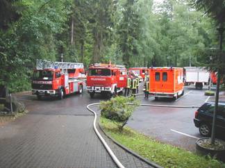 Innenangriff schwierig Aus noch ungeklärter Ursache kam es in einer der drei Hotelsaunen zu einem Brand. Bei Eintreffen der Feuerwehr brannte der Raum bereits in voller Ausdehnung. Ein Flash Over war durch die enorme Wärmeentwicklung nicht auszuschließen. Atemschutz Mit je drei Trupps im Innen- und Außenangriff wurde die Brandbekämpfung eingeleitet. Eine Rauchgasdurchzündung konnte verhindert werden. Durch den massiven Einsatz konnte das Feuer zügig unter Kontrolle gebracht werden. Rauchgasvergiftung Der Sauna- und Fitnessbereich des Hotels wurde sofort geräumt. Dennoch verletzten sich zwei Personen mit einer leichten Rauchgasvergiftung und kamen zur Kontrolle ins Krankenhaus. Der Brandbereich konnte mit dem Hochleistungslüfter Rauchfrei belüftet werden. Großaufgebot Da bei einem Brand in einem Hotel von einem Einsatz der Superlative ausgegangen wird, kam ein Großaufgebot der Feuerwehr zum Einsatz. Brandwache an der Einsatzstelle Eine Gruppe verblieb bis zum Spätnachmittag an der Einsatzstelle. Die Einsatzkräfte konnten mit der Wärmebildkamera die letzten Brandnester ausfindig machen und ablöschen. Für die Kripo, die nach Mittag mit einem Sachverständigen anrückte, musste der Brandraum ausgeleuchtet werden. Einsatzleiter: BI H. Kroll Fotos: Feuerwehr Einsatzdauer Brandbekämpfung: 2 Stunden Einsatzdauer Brandwache: 6 Stunden