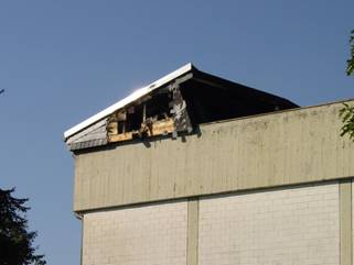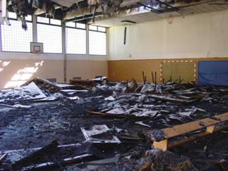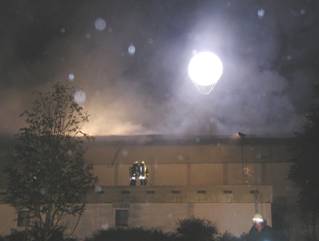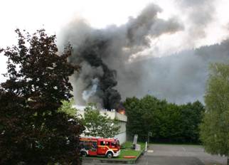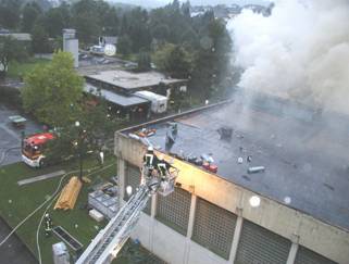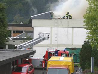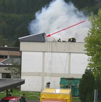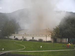 Vollbrand Als gegen 14.20 Uhr die ersten Einsatzkräfte des Löschzug Freienohl eintrafen brannte das Flachdach der Halle in voller Ausdehnung. Alarmiert waren zu diesem Zeitpunkt der Löschzug Freienohl, die Löschgruppe Wennemen und die Drehleiter Meschede. Brandausbreitung Die Brandbekämpfung wurde durch einen Trupp unter Einsatz von Atemschutz über eine Schiebleiter auf dem Hallendach eingeleitet. Das Feuer hatte auch das am Rand der Halle und über die gesamte Länge verlaufende Pultdach erfasst (siehe Pfeil). Des Weiteren wurden mehrere Löschgruppen und eine zweite Drehleiter zur Verstärkung angefordert. Gleichzeitig entschied man sich zur Räumung des direkt angrenzenden Hallenbades. Durch eine Riegelstellung mit einem Hochleistungslüfter wurde eine Verqualmung des Schwimmbades während des gesamten Einsatzes verhindert. Unterstützung Neben der Drehleiter aus Meschede, die zu nächst an der Seite der Turnhalle zur Brandbekämpfung eingesetzt wurde, rückten die Einsatzkräfte mit mehreren Strahlrohren von einem Vordach aus dem Feuer zu Leibe. Abschnitte Die gesamte Einsatzstelle wurde in drei Abschnitte eingeteilt. Die Drehleiter Meschede wurde umgesetzt und zusammen mit der um 14.40 Uhr alarmierten Arnsberger Leiter auf der Rückseite des Gebäudes postiert und von hier zur Brandbekämpfung des Pultdaches eingesetzt. Verpflegung Für die Verpflegung der Einsatzkräfte stand ab ca. 17:00 Uhr das Deutsche Rote Kreuz in der nahe gelegenen Schule bereit. Hier konnte sich jeder kurzzeitig vom Einsatzstress erholen, bevor die Arbeit wieder aufgenommen wurde. Kräfteaustausch Weitere Löschgruppen wurden um 19:00 Uhr in Marsch gesetzt um die erschöpften Kräfte vor Ort abzulösen. Am späten Abend konnte man die Einsatzstärke auf ein Minimum an Personal reduzieren. Keine Chance Nach dem das Flachdach größten Teils gelöscht war, konzentrierten sich die Löschmaßnahmen auf das Pultdach. Dies erwies sich jedoch durch den Überbau äußerst schwierig. Nur der gezielte Einsatz eines Wasserringmonitors von unten in der Halle brachte hier die ersten Löscherfolge. So wurde dann während der Nachtstunden in Kleinarbeit der gesamte Dachaufbau gelöscht. Um 2.28 Uhr war das Feuer so weit aus, dass bis gegen Morgen nur noch eine Brandwache an der Einsatzstelle verblieb. THW auch dabei Um die Beleuchtung in der Nacht sicherzustellen wurde gegen 17:00 Uhr das THW aus Ibbenbüren angefordert. Das THW Ibbenbüren ist im Besitz eines Leuchtballon Powermoon Helimax . Der Ballon wir mit Heliumgas gefüllt und steigt damit selbstständig auf. Im Ballon sind drei Metalldampflampen montiert, die einzeln zu- oder abgeschaltet werden können. Die Einsatzhöhe des Ballons beträgt 10 bis 50 Meter und kann dann eine Fläche von bis zu 12.000 m 2 blendfrei ausleuchten. Tolle Sache. Ohne Trecker lief nichts mehr Durch den starken Regen am Abend war die Zufahrt zur Rückseite der Turnhalle aufgeweicht. Die Fahrzeuge, die hier eingesetzt worden waren, kamen mit eigener Kraft nicht mehr zurück, denn der einzige Weg hinter das Gebäude verlief über die Wiese zwischen Halle und Ruhr. Keine Panik! Sofort wurde ein Trecker organisiert, der die Einsatzfahrzeuge wieder auf festen Boden zog. Hoher Schaden Das gesamte Ausmaß des Schadens konnte erste am nächsten Morgen begutachtet werden. Das Hallendach war größtenteils eingestürzt und hatte auch in der Turnhalle zu erheblichen Schäden geführt. Bis lang wird der Schaden auf ca. 500000 Euro geschätzt. Hierbei sind die Leistungen der Eingesetzten Kräfte nicht mit eingerechnet, denn der Aufwand der meist ehrenamtlich geleisteten Hilfe kann man mit Geld nicht aufrechnen. Reinigung Auch die Sozial- und Umkleideräume der Turnhalle sind durch das Löschwasser stark in Mitleidenschaft gezogen worden. Hier wird eine aufwendige Reinigung einer Spezialfirma notwendig. Einsatznachgespräch Ca. vier Wochen nach dem Brand der Turnhalle trafen sich die Führungskräfte der eingesetzten Einheiten zu einem Erfahrungsaustausch im Freienohler Gerätehaus. Einsatzleiter Stefan Odoj und Löschzugführer Ludger Göckeler ließen anhand einer Powerpoint-Präsentation den Einsatz noch einmal Revue passieren. Anschließend gab es dann noch eine rege Diskussionsrunde, wobei festgestellt wurde, dass die Zusammenarbeit aller Kräfte sehr gut geklappt hat. Natürlich wurden auch einige Verbesserungen der Einsatzabläufe aufgezeigt, aber im Gossen und Ganzen war man sich einig: „Gute Arbeit“. Eingesetzte Kräfte Löschzug Freienohl Löschzug Meschede Löschzug Arnsberg Löschgruppe Olpe Löschgruppe Wennemen Löschgruppe Berge Löschgruppe Visbeck Löschgruppe Grevenstein Löschgruppe Wallen Löschgruppe Wehrstapel Löschgruppe Eversberg DRK Meschede THW Ibbenbüren THW Arnsberg Rettungsdienst HSK Wehrführung Johannes Thüsing Kreisbrandmeister Martin Rickert Brandschutzdienststelle HSK Bernd Krause Stadt Meschede Dietmar Rinschede Gesamt ca. 125 Personen Eingesetzte Gerätschaften Fahrzeuge 26 Strahlrohre C 7 Strahlrohre B 3 Wasserringmonitor 1 Wenderohre DLK 2 Halogenscheinwerfer 1KW 10 Stromerzeuger 5 Überdrucklüfter 2 Atemschutzflaschen 72 Einsatzleiter: BI Stefan Odoj, Löschzug Freienohl Fotos: Feuerwehr Meschede Feuerwehr Arnsberg Stadt Meschede Privat Einsatzdauer: ca. 19 Stunden