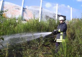Aufmerksame Nachbarn Direkt an der Autobahn auf der Unterführung Lucienstrasse brannten ca. 15 Quadratmeter Böschung. Das Feuer wurde vor dem Eintreffen der Einsatzkräfte von Nachbarn mit einem Feuerlöscher bekämpft. Für die Feuerwehr galt es die Fläche noch mal zu wässern. Einsatzleiter: BI H. Weber Fotos: Feuerwehr Einsatzdauer: 30 Minuten
