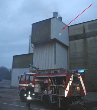 Kühlung angesagt Bei Reparaturarbeiten geriet die Absauganlage eines Steinbrechers in Brand. Die erwärmten Rohre und der Exhauster auf dem Dach wurden mit einem C-Rohr im Innenangriff und einem C-Rohr über die Drehleiter gekühlt. Nach dem Öffnen der Anlage wurden zur Brandbekämpfung zwei Pulverfeuerlöscher eingesetzt. Einsatzleiter: StBI L. Schlinkmann Fotos: Feuerwehr Einsatzdauer: 3 Stunden