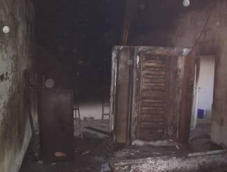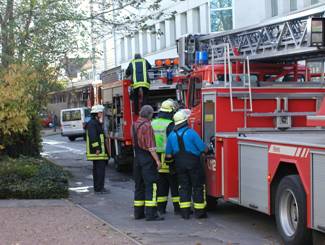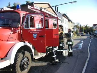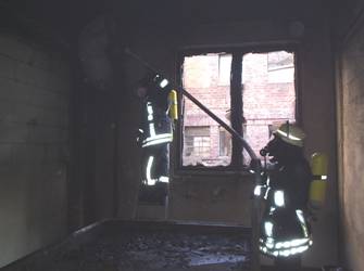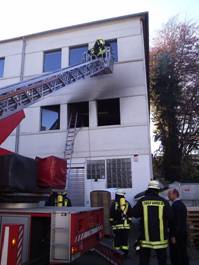Ausgebrannt Bei Umbauarbeiten in einem früheren Industriegebäude geriet eine alte Spritzkabine in Brand. Beim Transport der abgebauten Kabine stürzte das Metallgehäuse um und durchtrennte die Stromleitung einer Kabeltrommel. Hierbei entstand ein Abrissfunke und entzündete den freigewordenen Lackstaub. Schlagartig stand der gesamte Raum in Brand. Kontrolle Durch den schnellen Einsatz der Feuerwehr konnte ein Übergreifen auf andere Gebäudeteile verhindert werden. Dennoch lies sich ein geringer Gebäudeschaden nicht verhindern. Ein Abluftrohr im Brandraum wurde mit der Wärmebildkamera auf Glutnester untersucht. Einsatzleiter: BI H. Kroll Fotos: Feuerwehr Einsatzdauer: 1 Stunde