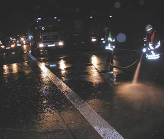 Gefährliche Jahreszeit Eine Rotte von ca. 20 Wildschweinen hatte versucht die Fahrbahn zu überqueren. Hierbei wurden zwei Tiere von einem PKW und einem Kleintransporter erfasst und getötet. Personen wurden nicht verletzt, an den Fahrzeugen entstand nur leichter Schaden. Die Feuerwehr kümmerte sich um die Reinigung der Strasse. Die meisten Wildunfälle passieren in der dunklen Jahreszeit. Einsatzleiter: OBM B. Franke Fotos: Feuerwehr Einsatzdauer: 45 Minuten