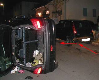 Glück im Unglück Gemeldet war ein mit eingeklemmter Person. Doch Erleichterung an der Einsatzstelle. Eine Fahrerin hatte mit ihrem Fahrzeug ein stehendes Auto gestreift und zwei Meter nach vorne gegen eine Warnbarke geschoben. Der Wagen der Verursacherin war durch den Aufprall auf die Fahrerseite gekippt. Die Fahrerin konnte sich nicht selbst aus der misslichen Lage befreien. Sie wurde von der Feuerwehr durch die Heckklappe aus dem Auto gehoben, vom Notarzt versorgt und mit leichten Verletzungen vorsorglich ins Krankenhaus gebracht. Das stark beschädigte Auto konnte von den Feuerwehrkräften auf die Räder gestellt werden, anschließend wurde die Strasse gereinigt. Einsatzleiter: OBM M. Janßen Fotos: Feuerwehr Einsatzdauer: 45 Minuten