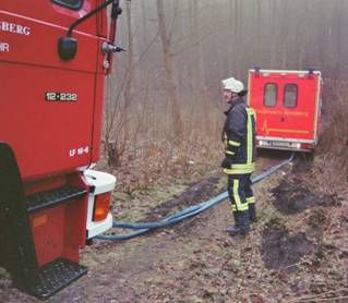 Keine Panik Der erste Einsatz 2006 gehörte zu den schönen Seiten der Feuerwehrarbeit. Ein Rettungswagen des eigenen Fuhrparks hatte sich auf einem Waldweg festgefahren. Der RTW wurde mit einem Endlosanschlagmittel an den Haken genommen und wieder auf festen Untergrund gezogen. Weder Patient noch Besatzung waren bis zum Abschluss der Bergung gefährdet. Einsatzleiter: HBM K.-J. Kückenhoff Foto: Feuerwehr Einsatzdauer: 45 Minuten