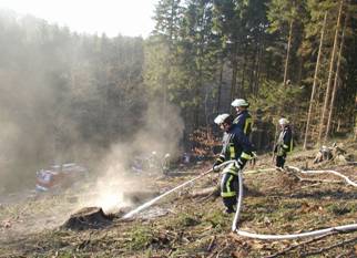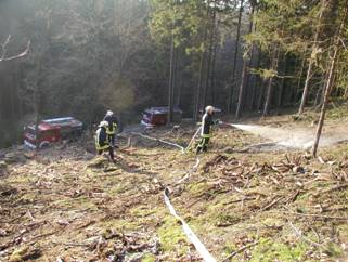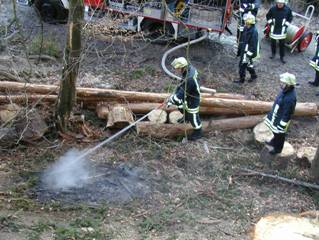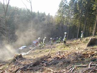 Schnell gelöscht Bei Abholzungsarbeiten hatte ein Bauer mehrere kleine Feuer entzündet um die Reste der gefällten Bäume zu verbrennen. Aufmerksame Wanderer hatten die qualmenden Häufchen im Wald bemerkt und Alarm geschlagen. Die Glutnester konnten ohne große Mühe gelöscht werden. Einsatzleiter: BI W. Kemper Fotos: Feuerwehr Einsatzdauer: 1 Stunde
