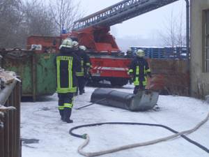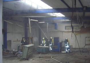 Abbruch Bei Abbrucharbeiten mit einem Schneidbrenner war die Absauganlage einer früheren Spritzkabine in Brand geraten. Mit der Wärmebildkamera wurden im gesamten Absaugrohr, im Innen- und Aussenbereich, glühende Lackreste festgestellt. Abbauen Unter Einsatz von Atemschutz wurden von mehreren Trupps die Rohre, in der Halle und auf dem Dach, mit einem Trennschleifer demontierte. Ablöschen Auf dem Boden liegend konnten dann die Glutnester schnell gelöscht werden. Der Einsatz endete mit einer Belehrung der Abbruchfirma. Einsatzleiter: BOI G. Knobloch Fotos: Privat Einsatzdauer: 1,5 Stunden Feuerwehr