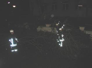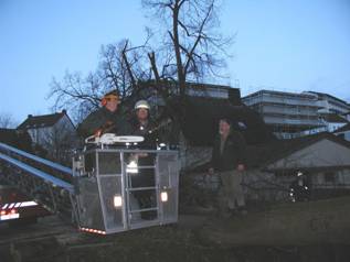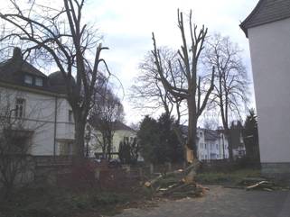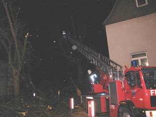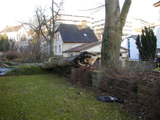 Gehweg versperrt Durch starken Sturm war ein mächtiger Teil eines ca. 120 Jahre alten und 25 Meter hohen Baumes abgebrochen und auf einen Gehweg gestürzt. Wegen der gefährlichen Lage des noch stehenden Teiles wurden der Baumbeauftragte und der Förster der Stadt Arnsberg zur Einsatzstelle geordert. Zwischenzeitlich sperrte die Feuerwehr den gefährdeten Bereich weiträumig ab. Gefahr gemindert An dem noch stehenden Teil wurde die Baumkrone soweit gestutzt, bis der Wind keine Angriffsfläche mehr hatte. Nicht mehr zu Retten Die Reste des abgebrochenen Baumes und ein weiterer in Mitleidenschaft gezogener Baum mussten in den nächsten Tagen entfernt werden. Einsatzleiter: BOI G. Knobloch Fotos: Feuerwehr Einsatzdauer: 2,5 Stunden