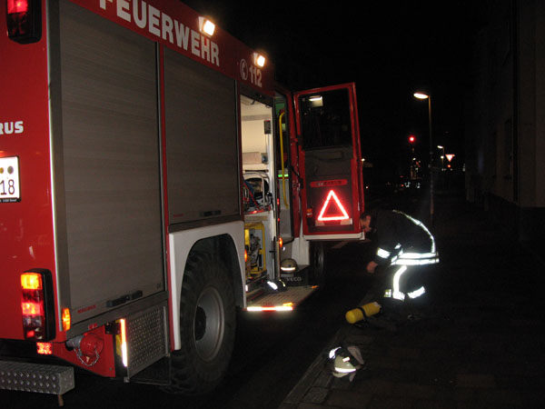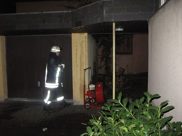 Der Feuerwehr-Leitstelle in Meschede wurde von einem Bewohner des Hauses Gasgeruch im Keller und in weiteren Stockwerken gemeldet. Auf Anweisung des diensthabenden Disponenten in der Leitstelle verließen alle Bewohner unverletzt das Gebäude. Die angerückten Einsatzkräfte konnten daher mit zwei Trupps unter Atemschutz sofort mit Messungen beginnen, um festzustellen, ob sich in dem Haus ein explosives Gas-Luft-Gemisch gebildet hat. Zuvor hatten sie die Gaszufuhr zu dem Haus abgeriegelt. Die Meßgeräte der Feuerwehr, die auf alle brennbaren Gase und Dämpfe reagieren, zeigten das Vorhandensein brennbarer Dämpfe an, eine spätere Messung der RWE ergab, dass es sich hierbei nicht um ausgetretenes Erdgas handelte. Das Haus wurde mittels eines Hochleistungs- lüfters quergelüftet und dadurch von den gefährlichen Dämpfen befreit. Für die Bewohner bestand danach keine Gefahr mehr. Sie konnten das Haus wieder beziehen.