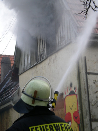 Gegen 17:55 wurde die Feuerwehr Arnsberg über Sirenenalarm zu einem Wohnhausbrand gerufen. Eine Anwohnerin hatte den Notruf gewählt. Beim Eintreffen der Einsatzkräfte stand der gesamte Dachstuhl in Flammen.Die Feuerwehr ging mit insgesamt vier Trupps vor, wobei sich drei Trupps unter Atemschutz auf den Innnenangriff konzentrierten. Die Meldung, daß sich möglicherweise noch Personen im Gebäude aufhalten könnten, hat sich nach intensiver Suche nicht bestätigt. Nachdem die ersten Flammen gelöscht waren, wurden die Dachziegel entfernt, um weitere Glutnester abzulöschen. Dies gelang nur durch die Vornahme von sogenannten Steckleitern. Die Drehleiter konnte nicht in Stellung gebracht werden, da das Gebäude zu weit von der Straße entfernt lag und keine Zwegung vorhanden war, die einen ausreichend festen Untergrund bot. Zur Brandursache und Schadenshöhe können noch keine Angaben gemacht werden. Die Kriminalpolizei hat ihre Arbeit aufgenommen. (18.04.2008) Arnsberg. Ursache des Brandes eines leerstehenden und baufälligen Hauses in der Lasmecke am Mittwochabend (die WR berichtete gestern) wurde durch Brandstiftung verursacht. Wie die Polizei gestern berichtete, ergaben sich für die ermittelnden Beamten schon während der Löscharbeiten Hinweise auf zwei Jugendliche. Eine Anwohnerin hatte erste Qualmwolken aus dem Haus bemerkt, sah gleichzeitig die aus dem Haus laufenden Jugendlichen und alarmierte die Feuerwehr. Noch während des Einsatzes kehrten die 15 und 16 Jahre alten Jungen mit ihren Müttern zum Brandort zurück und räumten ein, das Feuer verursacht zu haben. Sie hätten einen Silvesterknaller gezündet, der Altpapier entzündete und für den Hausbrand sorgte. Aus Panik seien sie dann weggelaufen. Der Schaden an dem seit acht Jahren unbewohnten und verfallenen Haus kann die Polizei nicht beziffern. Gegen die Jugendlichen wird nun wegen Brandstiftung ermittelt. (Foto und Text: WR)