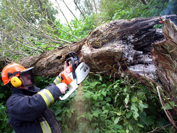 Zum einem Baumbrand an der Ruhr hinter dem Lidl Markt wurden am Mittwochabend der Löschzug Arnsberg und die hauptamtliche Wachbereitschaft alarmiert. Die Wehrmänner machten kurzen Prozess, sägten den kokelnden Stamm in kleine Stücke und warfen diese ins Wasser. Der Wurzelbereich des Baumes wurde später mit der Kübelspritze abgelöscht. Glasreste von Bierflaschen lassen den Rückschluss zu, dass schon viele Stunden vor dem Feueralarm unliebsame Zeitgenossen an der vermutlich durch Sturmschaden umgestürzten Weide „Rast“ machten und bewusst oder durch eine achtlos hineingeworfene Zigarettenkippe den Brand entfacht haben.