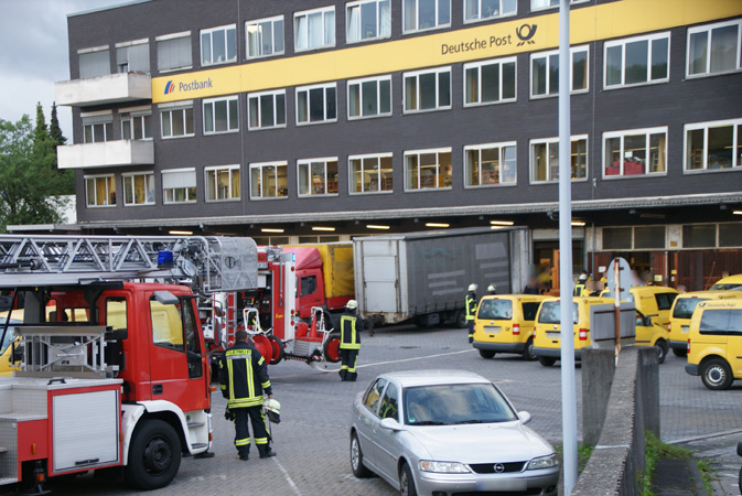Neheim. Am Morgen des 07. September wurden um kurz vor halb acht die Hauptwache und die Tageswache der Feuerwehr der Stadt Arnsberg sowie der Löschzug Neheim zu einem Einsatz auf der Neheimer Stembergstraße gerufen. Mitarbeitern der dort angesiedelten Post-Zentrale war aufgefallen, weshalb sie den Notruf wählten. Die Feuerwehr rückte umgehend mit rund 35 Kameraden zur Einsatzstelle aus. Trotz einer intensiven Erkundung mit mehreren Einsatztrupps, unterstützt durch eine Wärmebildkamera, war kein Brandherd aufzufinden. Sicherheitshalber wurde zeitgleich die Drehleiter in Stellung gebracht, um alle Räume des Gebäudes nochmals von außen auf eine etwaige Rauchentwicklung zu kontrollieren. Jedoch konnte auch im Zuge dieser Einsatzmaßnahme nichts Ungewöhnliches festgestellt werden. Nach rund 1 Stunde war der Einsatz daher für die Feuerwehr beendet.