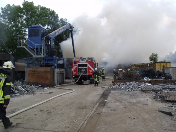 Beim Eintreffen der ersten Einsatzkräfte brannte ein Schrottberg, welcher aus verschiedenen Materialien bestand, in voller Ausdehnung. Sofort wurden mehrere Schlauchleitungen gelegt, und der Brand konnte von drei Trupps unter Umluft unabhängigem Atemschutz schnell gelöscht werden. Abschließend wurde noch ein Schaumteppich über die Brandstelle gelegt.
