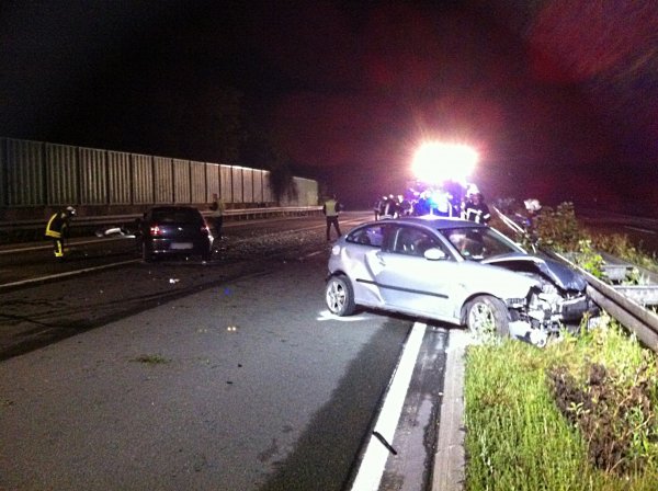 Die Feuerwehr leuchtete die Unfallstelle aus und nahm die ausgelaufenen Betriebsstoffe der beiden PKW auf. Nach dem Abtransport der stark beschädigten Unfallfahrzeuge wurde die Fahrbahn dann abschließend noch gereinigt. Nach rund zwei Stunden war der Einsatz für die Feuerwehr, die mit 38 Einsatzkräften und 6 Fahrzeugen zur Hilfeleistung vor Ort war, beendet.