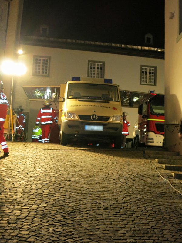 Die aus dem Gebäude geretteten Personen wurden einer Patienten-Sammelstelle zugeführt, die in den Räumen der benachbarten alten Klosteranlage eingerichtet wurde. Dort wurden durch sieben Notärzte und Mannschaften der Schnellen Einsatzgruppen (SEG’en) des Malteser Hilfsdienstes und des Deutschen Roten Kreuzes insgesamt 13 Patientinnen und Patienten behandelt, davon eine schwerverletzte Person. Eine weitere Person war zum Zeitpunkt ihrer Evakuierung bereits bewusstlos. Umgehend eingeleitete Wiederbelebungsversuche blieben erfolglos, so dass sie noch vor Ort verstarb. Die Verletzten wurden im weiteren Einsatzverlauf in umliegende Krankenhäuser transportiert.