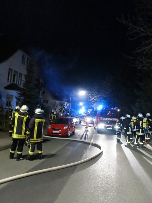 Beim Eintreffen der ersten Einsatzkräfte am Brandort hatten sich bereits alle Bewohner der brennenden Dachgeschosswohnung aus eigener Kraft ins Freie gerettet. Jedoch befanden sich noch mehrere Personen in anderen Wohnungen des Gebäudes, sodass sich die Feuerwehr zunächst auf die Evakuierung des gesamten Gebäudes konzentrierte. Gleichzeitig bauten die Wehrmänner eine Löschwasserversorgung auf und führten unter schwerem Atemschutz einen Löschangriff mit einem C-Rohr in der betroffenen Dachgeschosswohnung durch. Ein weiterer Löschangriff wurde von außen über eine Drehleiter vorgenommen. Die drei Bewohner der Dachgeschosswohnung wurden mit dem Verdacht auf eine Rauchgasvergiftung dem Rettungsdienst übergeben und anschließend den umliegenden Krankenhäusern zugeführt. Der Einsatzleiter der Feuerwehr ließ die Dachgeschosswohnung abschließend mit einer Wärmebildkamera auf verbliebene Brandnester untersuchen und das Gebäude mit einem Hochleistungslüfter vom Brandrauch befreien.