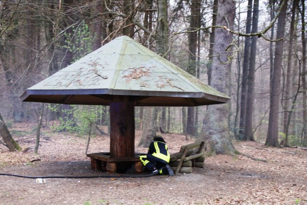 Neheim. Am Morgen des 04. April um 07:37 Uhr wurden die Hauptwachen Neheim und Arnsberg sowie der Löschzug Neheim zur Bekämpfung eines Kleinbrandes an einem Rund-Unterstand im Wald bei Neheim-Moosfelde alarmiert. An der Holzbank des Unterstandes war es aus bislang ungeklärter Ursache zu einem lokal begrenzten Feuer gekommen, das die Wehrleute unter Vornahme eines Schnellangriffs-Schlauchs schnell gelöscht hatten.