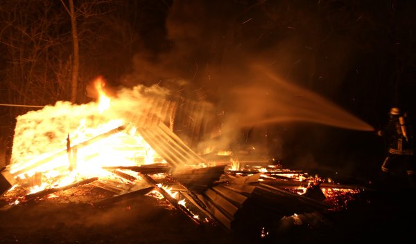 Rumbeck. Ein brennender Weideunterstand am Rumbecker Eisenhammer rief am Dienstagabend kurz nach 21 Uhr die Feuerwehr mit Sirenenalarm auf den Plan. Anfangs waren die Einsatzkräfte von einem Scheunenbrand ausgegangen. Als die Wehrmänner aus Rumbeck ankamen, stand der Holzbau mit dem Wellblechdach, der Pferden eines naheliegenden Gutshofes im Sommer als Unterstand dient, schon lichterloh in Flammen und stürzte kurz darauf ein. Von der Straße aus legten die Wehrmänner mehrere Schlauchleitungen über die ausgedehnte Wiese, trotzdem schnell Wasser am Brandgeschehen zur Verfügung stand, war der Unterstand nicht mehr zu retten.