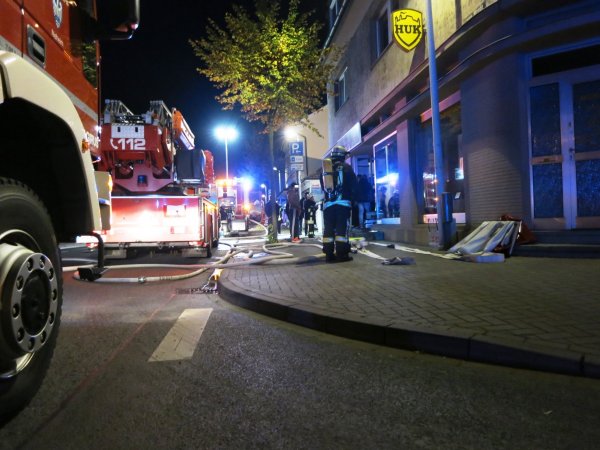 Am Abend dieses ereignisreichen Tages wurde die Feuerwehr-Leitstelle in Meschede dann über einen Brand in einem Wohn- und Geschäftshaus an der Langen Wende in Neheim informiert. Da es zu dem Zeitpunkt unklar war, ob sich noch Personen in dem Gebäude befinden, alarmierte der zuständige Leitstellendisponent um 19:44 Uhr wiederum die beiden Hauptwachen aus Neheim und Arnsberg sowie den Basislöschzug 1, bestehend aus den Einheiten aus Neheim und Voßwinkel. Beim Eintreffen der ersten Einsatzkräfte stellte sich heraus, dass sich keine Personen in dem Gebäude befanden. Im Zuge der Erkundung konnte ein kleines Feuer im Lagerbereich eines Shisha-Shops festgestellt werden. Dort brannte etwas Abfall. Ein Trupp unter schwerem Atemschutz nahm mit einem C-Rohr einen Löschangriff durch ein auf Kipp stehendes Fenster vor. Jedoch war dieses Fenster vergittert, so dass ein Zugang zu dem Gebäude auf diesem Wege nicht möglich war. Daher musste die Tür des Shops durch die Feuerwehr mit Brechwerkzeug geöffnet werden, damit der Brandort betreten und kontrolliert werden konnte. Anschließend wurde der Shop gelüftet und dadurch vom Brandrauch befreit. Der Einsatz war für die rund 50 Einsatzkräfte nach etwa 45 Minuten beendet. Für die Dauer des Einsatzes wurde die Lange Wende durch die Polizei gesperrt.