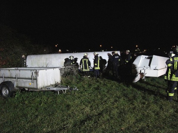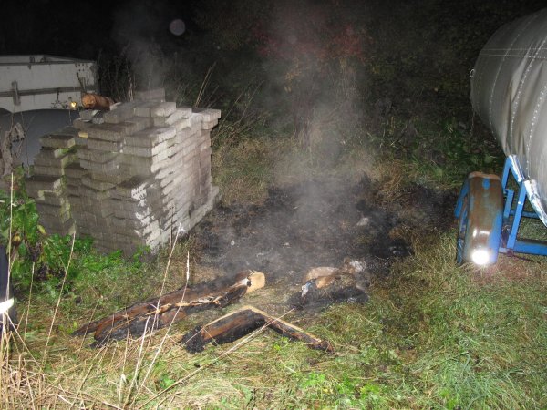 Die Einsatzkräfte hatten das Feuer mit dem Schnellangriffsschlauch eines Löschfahrzeugs binnen kurzer Zeit abgelöscht. Weitere Fahrzeuge leuchteten mit ihren Arbeitsscheinwerfern die in der Dunkelheit liegende Einsatzstelle aus. Der Einsatz war für die mit mehreren Löschfahrzeugen angerückten Wehrleute und die ebenfalls vor Ort befindliche Polizei nach einer knappen halben Stunde beendet.