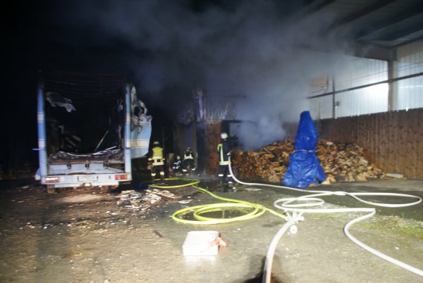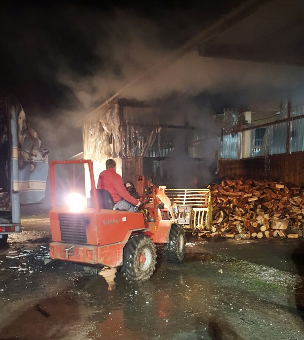 Sofort gingen mehrere Einsatztrupps unter Umluft unabhängigem Atemschutz zur Brandbekämpfung vor. Parallel dazu wurde eine Löschwasserversorgung aufgebaut, um über genug Löschwasserreserven zu verfügen. Mit einem Frontlader wurde das brennende Holz umgelagert, um die in dem Holzstapel verborgenen Glutnester erreichen und löschen zu können. Durch das gezielte und schnelle Eingreifen der Feuerwehr konnte ein größerer Schaden abgewendet und die Reithalle gerettet werden.