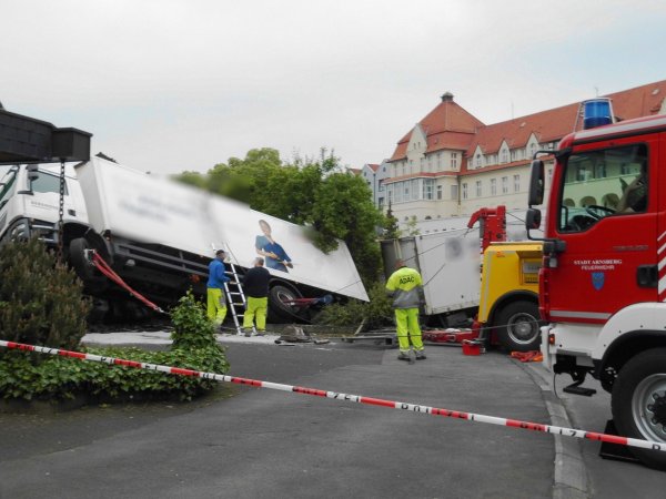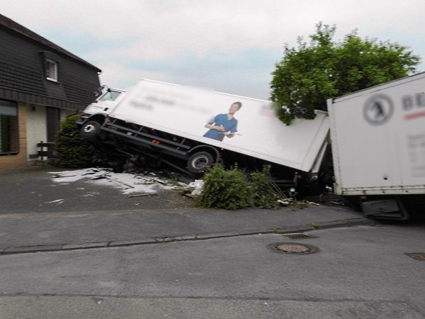 Fahrerloser LKW rollt in Arnsberg über Kreuzung und stürzt um