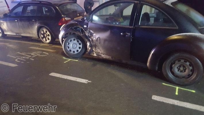 Hüsten. Auf dem Rückweg von einem Brandeinsatz an der Burgstraße in Neheim (siehe Meldung) wurden die Kräfte der Feuerwehr zur Unterstützung bei einem Verkehrsunfall auf der Bahnhofstraße in Hüsten gerufen. Hier waren zwei Pkw zusammengestoßen.