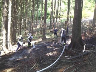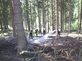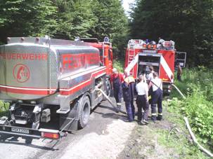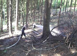 Tief im Wald In einem Waldgebiet, ca. 200 Meter von der nächsten Strasse entfernt, brannten 150 m2 Unterholz. Bis zur Einsatzstelle musste eine lange Schlauchleitung verlegt werden. Wasserversorgung Um genügend Löschwasser in das abgelegene Waldgebiet zu bekommen, wurde ein Pendelverkehr mit mehreren Tanklöschfahrzeugen eingerichtet. Zusätzlich kam Hilfe aus der Stadt Sundern. Der sich gerade in Sundern von einem Einsatz frei gemeldete Tankwagen mit 10000 Litern Wasser wurde ebenfalls zur Einsatzstelle geordert. Mit diesem großen Wasservorrat konnte die Einsatzstelle ordentlich bewässert werden. Blitzeinschlag Nach ersten Erkenntnissen des Stadtförsters Noseleit (Tarzan), war das Feuer durch einen Blitzeinschlag in einen Baum entstanden. Einsatzleiter: BAR P. Glaremin Fotos: Feuerwehr Einsatzdauer: 3 Stunden