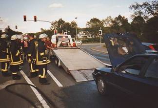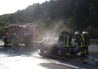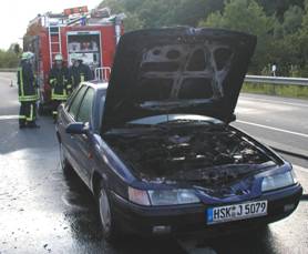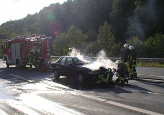 Schnell gelöscht Der Fahrer eines PKW blieb vor einer roten Ampel stehen und bemerkte auf einmal Rauchschwaden aus dem Armaturenbrett. Sofort verlies er sein Fahrzeug und alarmierte die Feuerwehr. Das Feuer im Motorraum konnte schnell gelöscht werden. Bergung Durch den Brand im Motorraum war der PKW nicht mehr Fahrbereit und musste von einem Bergungsunternehmen abtransportiert werden. Einsatzleiter: BOI G. Knobloch Fotos: Feuerwehr Einsatzdauer: 1 Stunde