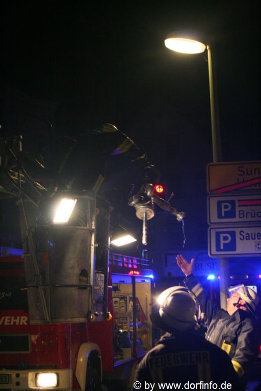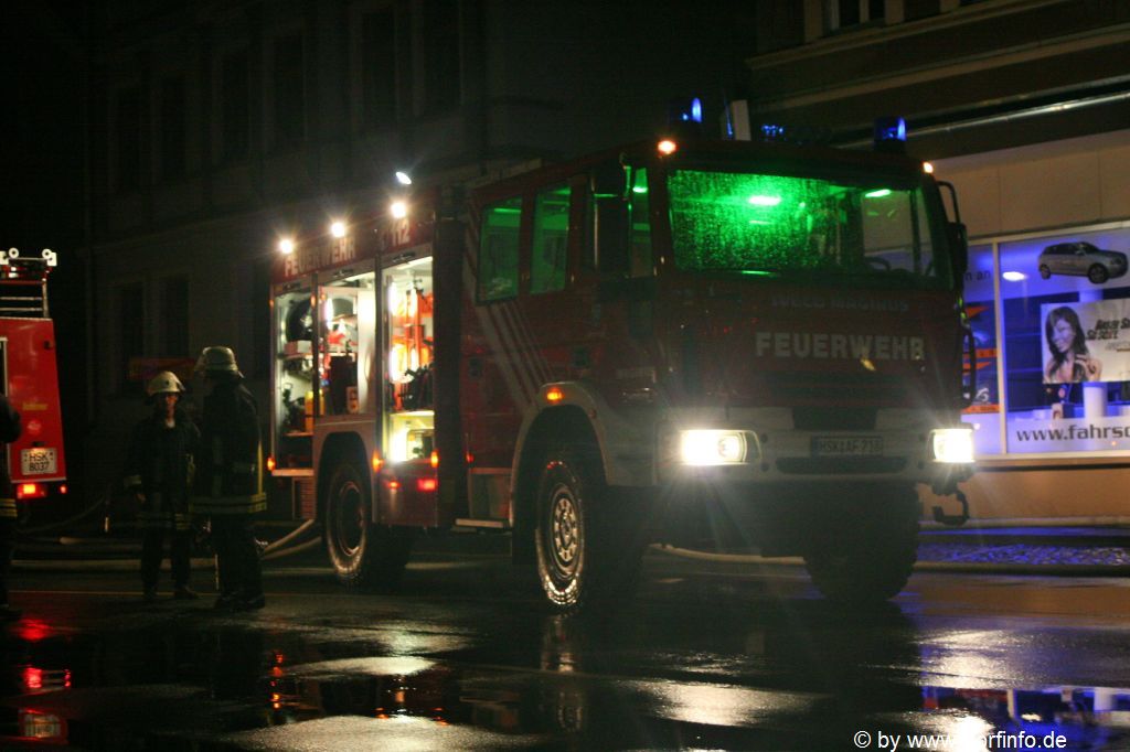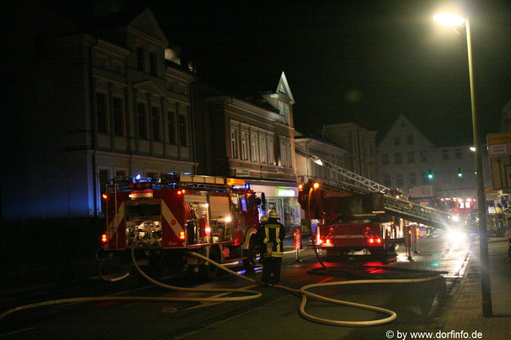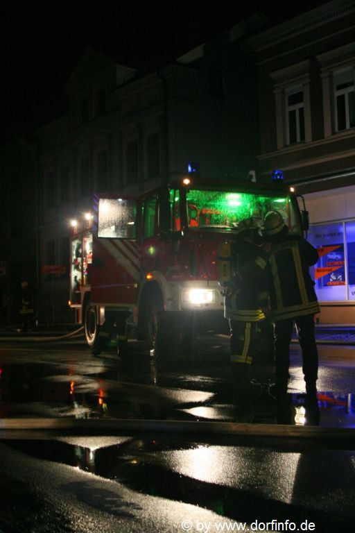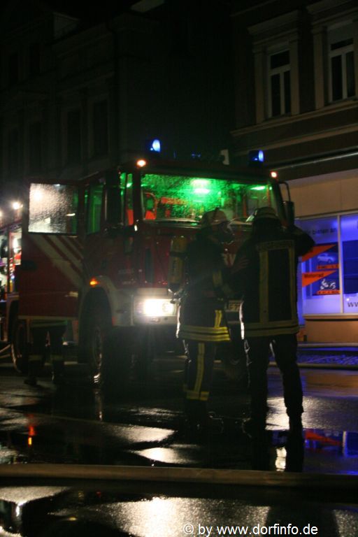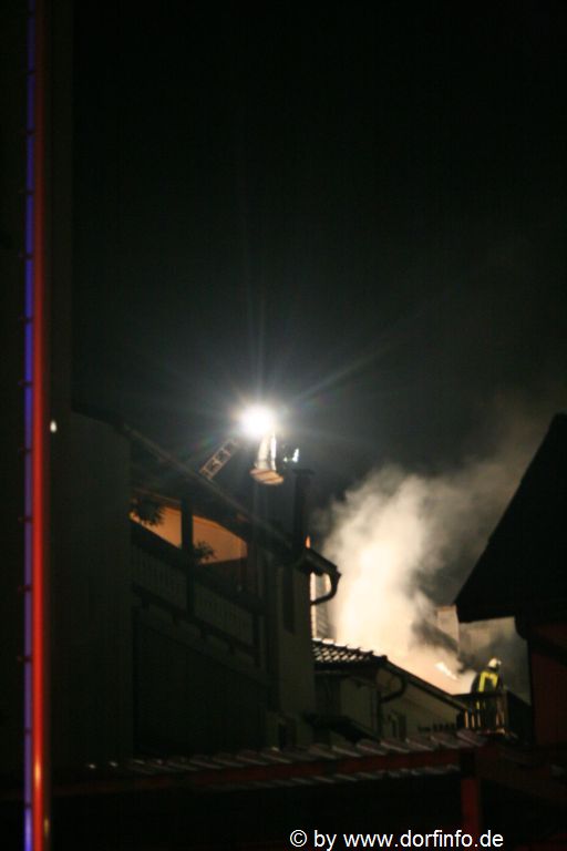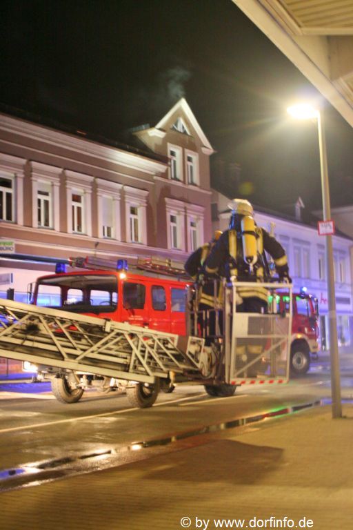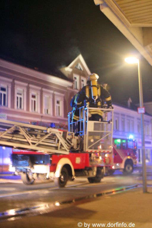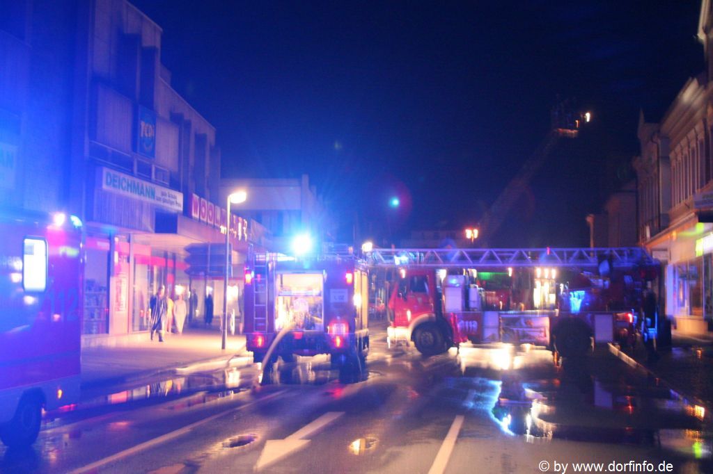 Auf der Dachterrasse eines Wohn- und Geschäftshauses in der Arnsberger Clemens-August-Straße ist am Montag um kurz vor 4 Uhr ein Brand ausgebrochen, der drohte, auf die angrenzende Wohnung und den Dachstuhl des Gebäudes überzugreifen. Durch das schnelle und routinierte Eingreifen der alarmierten Feuerwehr-Einsatzkräfte der Stadtteileinheit Arnsberg sowie des Stützpunkttrupps der Wache Neheim unter der Leitung von Brandamtsrat Peter Glaremin konnte jedoch ein direktes Übergreifen der Flammen auf das Gebäude verhindert und die Bewohner des Hauses dadurch vor einem größeren Schaden bewahrt werden. Gleichwohl wurde die Fassade der angrenzenden Wohnung durch den Brandrauch und die Wärmestrahlung beschädigt. Die 9 Hausbewohner hatten sich glücklicherweise bereits vor dem Eintreffen der Feuerwehr in Sicherheit bringen können. Eine Familie mit 3 kleinen Kindern, die in der betroffenen Dachgeschosswohnung lebt, wurde vorübergehend in einer städtischen Wohnung untergebracht. Die mit 11 Fahrzeugen und 50 Einsatzkräften angerückte Feuerwehr ging sowohl mit mehreren Trupps unter Atemschutz im Innenangriff als auch über 2 Drehleitern im Außenangriff gegen das Feuer vor und hatte es schnell unter Kontrolle. Es war dies der erste Einsatz der neuen Feuerwehr-Ärztin Marion Wiegelmann. Die Kripo hat die Ermittlungen zur Brandursache und Schadenshöhe aufgenommen. Vielen Dank an www.dorfinfo.de für die zu Verfügung gestellten Bilder
