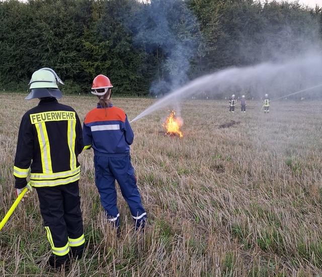 Die Feuerwehrkräfte des Löschzuges Arnsberg und der Löschgruppe Wennigloh haben gemeinsam auf einem abgeernteten Feld die Vegetationsbrandbekämpfung trainiert. Ziel der Übung war es, sowohl die Handhabung spezieller Gerätschaften zu üben als auch die Herausforderung zu meistern, Wasser an die Einsatzstelle zu bringen.