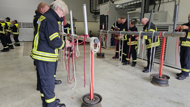 · Feuerwehrtechnischer Teil: Die Gruppen führten entweder den Aufbau eines Löschangriffs durch oder mussten die Rettung einer Person aus einem Schacht mittels Bockleiter absolvieren.