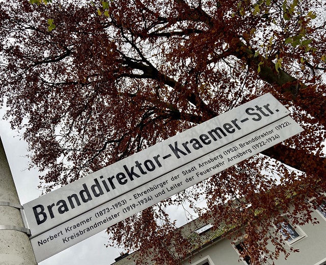 Ein neuer Straßenname ehrt nun posthum das Engagement eines verdienten Arnsbergers: „Branddirektor-Kraemer-Straße“ heißt ab sofort der Straßenabschnitt direkt vor dem Feuerwehrmuseum „Brennpunkt“ und dem künftigen Ort der neuen Rettungswache. Damit wurde nach Beschluss des Bezirksausschusses Arnsberg ein Abschnitt der östlichen Clemens-August-Straße zur Würdigung des ehemaligen Leiters der Feuerwehr und Ehrenbürgers Norbert Kraemer umbenannt.