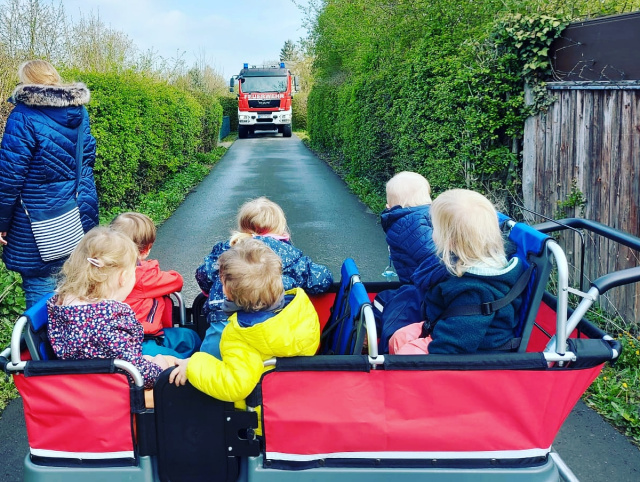 Die Kinder der "Kindertagespflege Plapperstube" von Anne Siebert und Jennifer Riedel aus der Arnsberger Jägerstraße hatten am 29. April 2021 ein tolles Erlebnis mit der Feuerwehr.