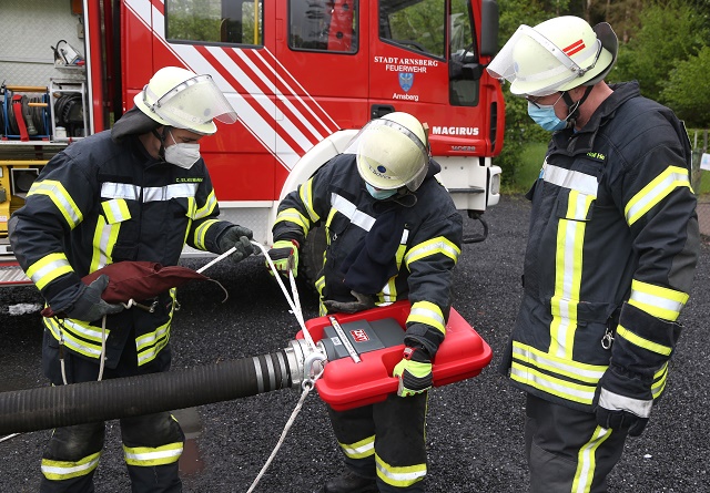 Arnsberg. Die Feuerwehr Arnsberg hat wieder mit dem praktischen Übungsbetrieb begonnen. Allerdings nur im kleinen Rahmen – wegen der Pandemie. Seit über einem Jahr stand der ansonsten wöchentliche Übungsdienst still.