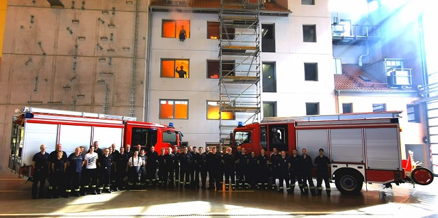Die Basislöschzüge 1 und 5 der Feuerwehr der Stadt Arnsberg übten jetzt am Institut der Feuerwehr (IdF) in Münster praxisnah zahlreiche Einsatz-Szenarien – vom Verkehrsunfall bis zum Großbrand.