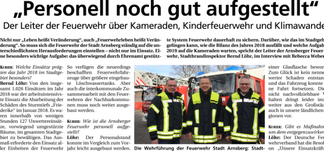 Stadt Arnsberg. Personell noch gut aufgestellt, ein Artikel vom 23. Februar  2019 vom SauerlandKurier.