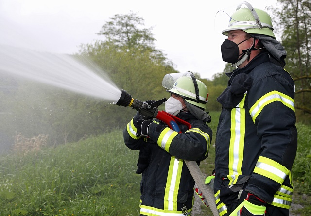 Arnsberg. Die Feuerwehr Arnsberg hat wieder mit dem praktischen Übungsbetrieb begonnen. Allerdings nur im kleinen Rahmen – wegen der Pandemie. Seit über einem Jahr stand der ansonsten wöchentliche Übungsdienst still. Zu groß war die Gefahr, die Einsatzfähigkeit der Wehr durch mögliche Corona-Infektionen innerhalb der Mannschaft zu gefährden. Unsere Zeitung besuchte stellvertretend für alle Feuerwehr-Einheiten in der Stadt eine Gruppe des Löschzugs Arnsberg. Ort des Geschehens: Der Vorplatz des Anglerheimes in der Wolfsschlucht unweit der Ruhr.