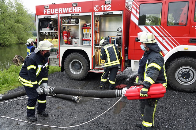 Kurz nach 19 Uhr treffen eine Löschgruppe in der Stärke 1:8 mit Tanklöschfahrzeug, Typ TLF 3000, und Einsatzleitwagen am Anglerheim ein. Eine Gruppe, das sind acht Feuerwehrleute plus ein Gruppenführer. Dieses Amt bekleidet an diesem Abend Unterbrandmeister Mark Schroller, der eigentliche Leiter der Mannschaft, Brandmeister Axel Hesse, ist beruflich verhindert. Dass die neun Einsatzkräfte mit zwei Autos anrücken, hat seinen Grund. „Trotz Maskenpflicht wollen wir auch in den Fahrzeugen Abstand halten und nicht so nah zusammensitzen“, erklärt Arnsbergs Löschzugführer Rolf Hesse, der bei dieser Übung die Aufgabe des Maschinisten übernommen hat und die Technik des Tanklöschfahrzeugs bedient. Nach der Aufforderung „Absitzen“ treten Angriffs-, Wasser- und Schlauchtrupp sowie Maschinist und Melder neben dem Fahrzeug an. „Angriffstrupp mit 1. C-Rohr zur Brandbekämpfung vor, Wasserentnahme über offenes Gewässer“, gibt Übungsleiter Mark Schroller den Einsatzbefehl. Dann geht alles ganz schnell, eine Schlauchleitung wird mit einem Saugkorb vorneweg zur nahegelegenen Ruhr verlegt, die Feuerlöschkreiselpumpe des Löschfahrzeugs läuft auf Hochtouren und Minuten später ertönt der Ruf „1. Rohr Wasser marsch“. Wenn die Pumpe auf Höchstlast fahre, könne sie 2000 Liter Wasser pro Minute bei einem Druck von 10 bar zum Brandherd fördern, erklärt Maschinist Rolf Hesse. Erstmals im Übungseinsatz ist der neue „Schwimm-Saugkorb“, mit dem seit einiger Zeit alle Einheiten im Stadtgebiet ausgerüstet wurden. Vorteil sei, so Hesse bei der anschließenden Einweisung in das neue Gerät, dass dieser Saugkorb durch ein schwimmfähiges Plastikgehäuse nicht zu tief in den Fluss oder Löschteich eintaucht und somit die Gefahr des Verstopfens durch Blätter, Schlamm oder Unrat verhindert würde. Nach einer knappen Stunde ist am Anglerheim Übungsende. „Endlich mal wieder rausgefahren“, sagt ein Feuerwehrmann beim Schlaucheinrollen - denn man habe immerhin 14 Monate „auf dem Trockenen gesessen“.
