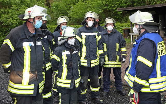 Wichtig seien diese Übungen mit anschließender Einweisung, so erläutert Basislöschzugführer Stefan Beule später im Gespräch, besonders für die neu hinzugekommenen Kameraden. Denn erfreulicherweise habe die Feuerwehr während des Lockdowns einiges an Nachwuchs bekommen. „Durch Corona bestand für die neuen Feuerwehrleute bisher keine Möglichkeit, mit der Ausbildung zu beginnen. Wir haben nun eine Kompaktausbildung entwickelt, damit die ‚Neuen‘ schnellstmöglich beim Einsatz mit ‚ins Rad greifen können‘“, so Stefan Beule, der als Leiter des Basislöschzuges 2 für die Einheiten aus Arnsberg, Breitenbruch und Wennigloh verantwortlich ist. „Unsere Feuerwehrleute sind auf einem guten Ausbildungsstand und freuen sich auf den Neustart“, weiß Stefan Beule. Denn nur durch das immer wieder Auffrischen von Wissen durch Übungen könnten die Einsatzkräfte auf dem neuesten Stand sein und im Einsatzfall auch unter höchstem physischem und psychischem Druck gute Arbeit abliefern.