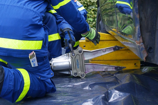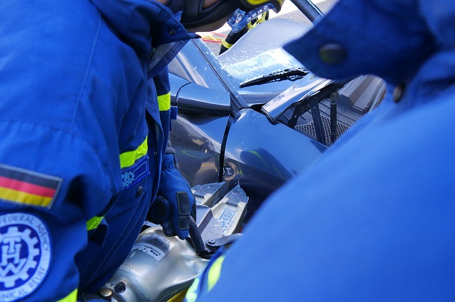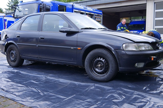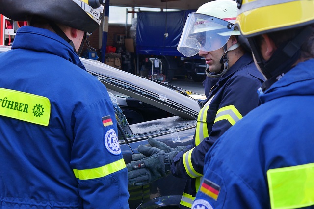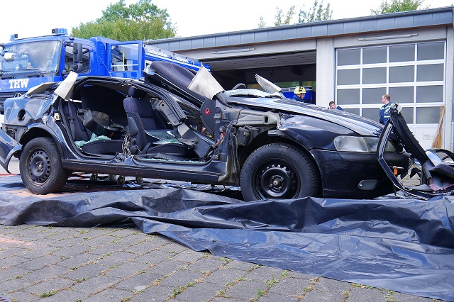 Die umfangreiche Ausbildung begann mit der Eigensicherung und streckte sich über das heraustrennen der Türen, Bildung einer dritten Tür bis hin zum Abnehmen des Autodaches und wegdrücken des Vorderwagens hin.