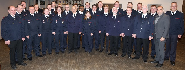 Mit dem Feuerwehr-Ehrenzeichen des Landes NRW in Silber für 25-jährige Zugehörigkeit zur Feuerwehr wurden Christian Karla und Jessica Viertel (LZ Arnsberg), Carsten Döring, Daniel Döring und René Reinold (LG Breitenbruch) und Britta Hansknecht (LG Wennigloh) geehrt, das Ehrenzeichen in Gold für 35 Jahre wurde an Dietmar Koch und Marcus Pieper (LZ Arnsberg) und Peter Krämer (LG Wennigloh) verliehen.